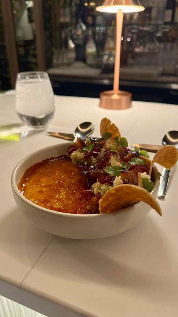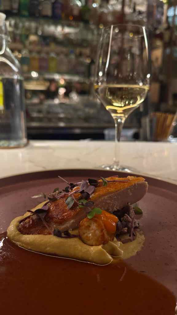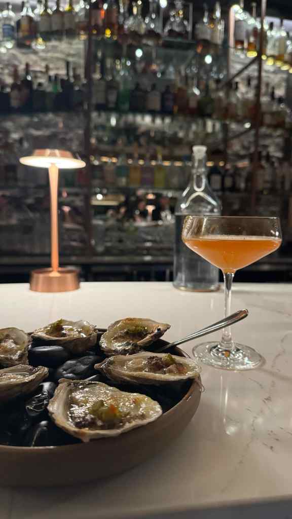 Pour ce qui est de la nourriture, j’ai commencé par une entrée d’huitres. Puis, j’ai opté pour la formule découverte (omnivore) qui comprenait 6 services pour 100$, un prix plus que raisonnable pour ce qui est proposé. Je n’ai pas pris l’accord de vin, puisque je devais conduire après. Par contre, j’ai gouté leurs cocktails signatures Fruits d’Automne et Pêche au Tennessee. De vrais délices! Chacun des services était présenté en détail et mariait parfaitement saveurs et textures.